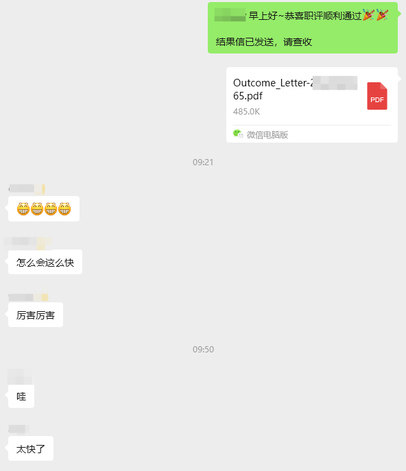 客戶于2025年9月1日遞交申請,2025年9月3日通過。申請過程中,文案耐心指導(dǎo)客戶準(zhǔn)備相應(yīng)的材料,嚴(yán)謹核對文件并撰寫相應(yīng)材料,最終幫助客戶無補料無電調(diào)順利通過職評。