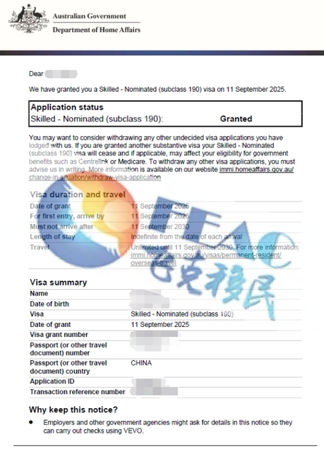 恭喜Mr. Ren及其小孩190簽證順利下簽!(境外)