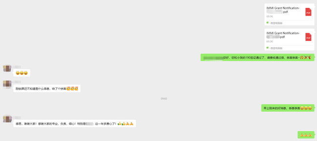 9月11日:恭喜Mr. Ren及其小孩190簽證順利下簽!(境外)