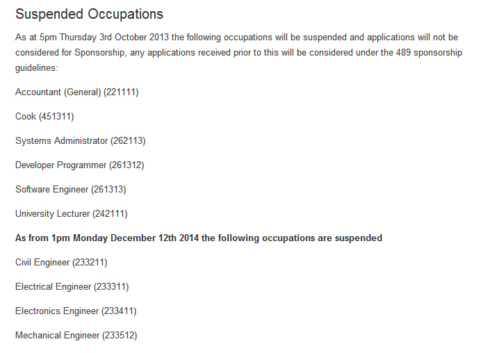 NSW官網(wǎng)總職業(yè)清單列表里面有些地區(qū)489清單并未跟上地區(qū)官網(wǎng)更新的速度,現(xiàn)NSW官網(wǎng)的清單仍是2014年10月3日的版本,而比如 Southern Inland 在2014年12月12日有職業(yè)關(guān)閉的,總表上沒有及時更新(如圖),現(xiàn)小編根據(jù)地方官網(wǎng)的信息將NSW總清單更新了一遍,大家可以點擊查 看:http://andyyimin.com/index.php?z=spage&c=index&a=53 。