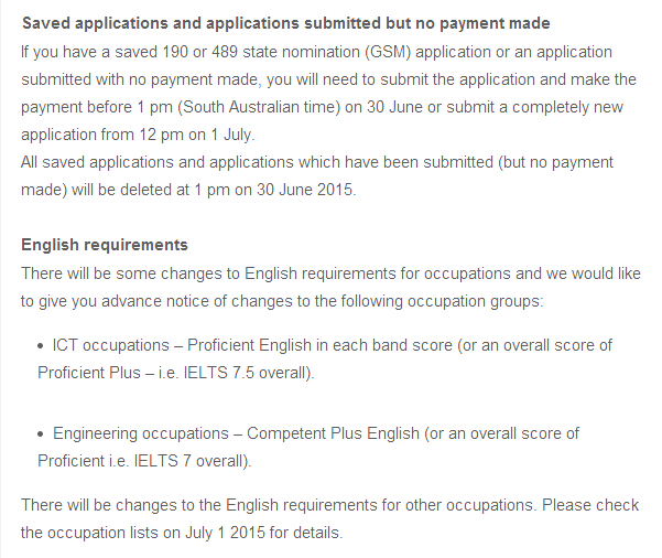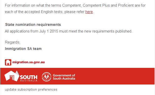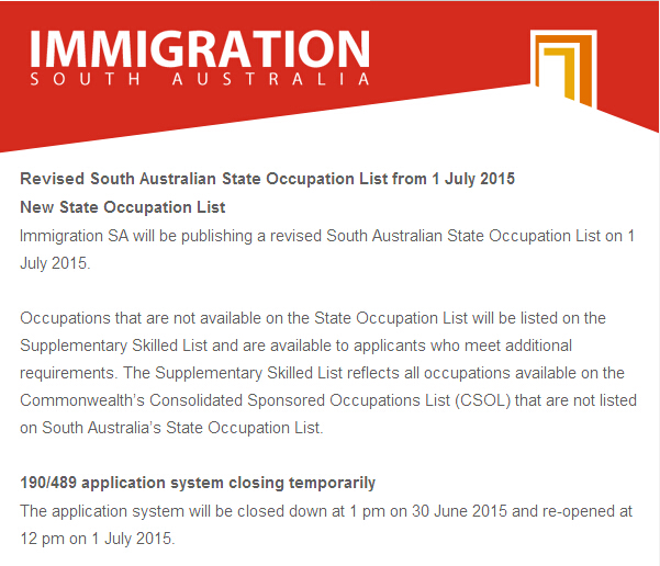 22號ANDY技術移民網收到了SA關于2015年7月1日最新擔保清單的郵件,郵件原文截圖給大家,底下附上小編為大家整理的中文版: