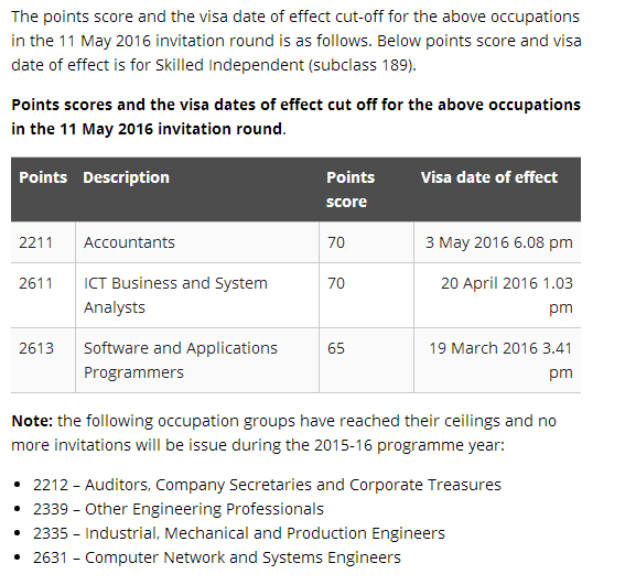 由于移民局收到以下職業(yè)的大量的EOI, 以下職業(yè)的邀請將每個(gè)月兩次按比例來發(fā)放: