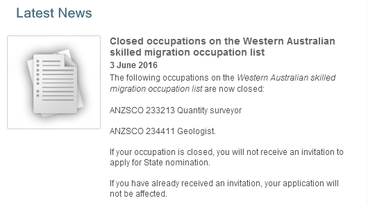 6月3日西澳移民官網(wǎng)發(fā)出通知:ANZSCO 233213 Quantity surveyor,ANZSCO 234411 Geologist.