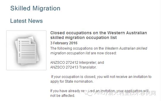ANZSCO 272412 Interpreter 和 ANZSCO 272413 Translator 已關閉擔保,申請此職業將不能獲得新的州擔保邀請,已獲得邀請的申請者不受影響。