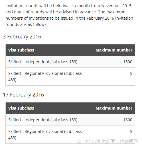 2月份移民局EOI邀請第一輪已于2月3日發出,第二輪將于2月17日發出。分別將發出1600份189簽證邀請,5份489簽證邀請。