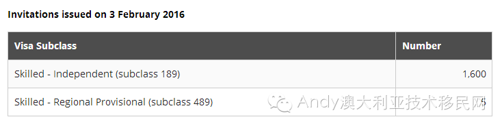 共發(fā)出Skilled - Independent (subclass 189)邀請1600份,Skilled - Regional Provisional (subclass 489)親屬邊遠地區(qū)擔(dān)保邀請5份。