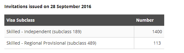 今日移民局終于發布9月28日EOI邀請的官方結果報告。該輪邀請189配額邀請了1400個,(subclass 489)親屬邊遠地區擔保邀請了113個,減少了37個。