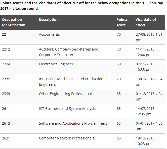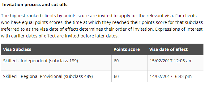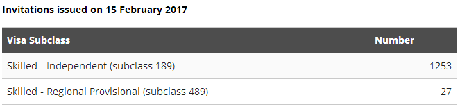 今日移民局發布了2月15日EOI邀請的官方結果報告。該輪189配額邀請了1253個,(subclass 489)親屬邊遠地區擔保邀請了27個。