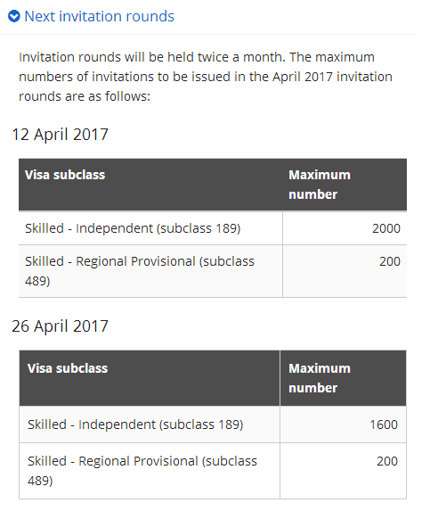 今日移民局發(fā)布了2017年3月15日EOI邀請的官方結(jié)果報告。該輪189配額邀請了1805個,(subclass 489)親屬邊遠(yuǎn)地區(qū)擔(dān)保邀請了25個。