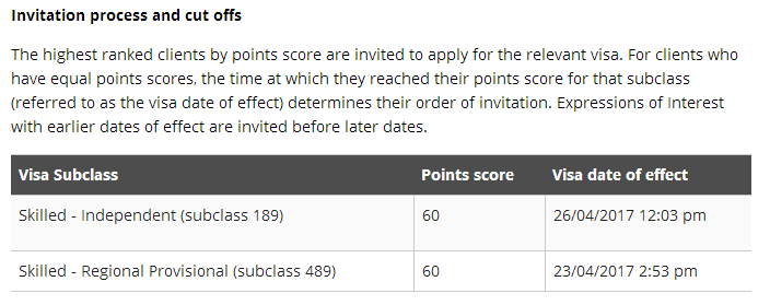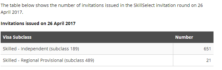 4月26日EOI邀請的官方結果報告移民局已發布。本輪實際邀請人數189配額只邀請了651個,(subclass 489)親屬邊遠地區擔保邀請了21個。下輪EOI邀請時間5月24日。