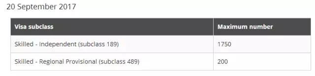 9月第2輪EOI邀請,也就是本財年第6輪邀請已于今日凌晨發放完畢。本輪189邀請名額與上輪保持一致達到了1750個, 相比財年前4輪每輪1000個邀請名額增加了750個,呈大幅增長態勢。但是(subclass 489)親屬邊遠地區擔保本輪僅有200個名額,名額較少。話不多說,直接看官網數據↓↓↓