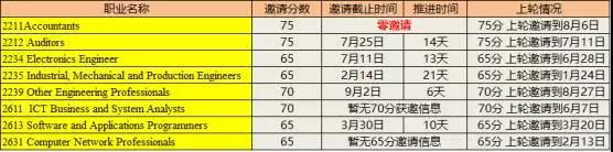 非熱門職業:由于本輪仍舊有1750個配額,而且加上會計本輪零邀請(意味著配額也給非熱門了),此輪非熱門維持上輪快速前行的態勢,65分繼續前行40天到9月12日。
