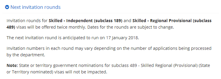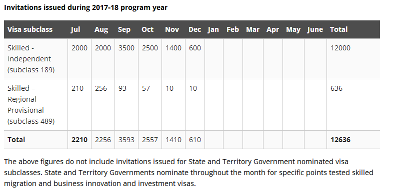 2017-18年度截至本輪:189獨(dú)立技術(shù)移民共邀請了12000人,489偏遠(yuǎn)地區(qū)親屬擔(dān)保為636人。
