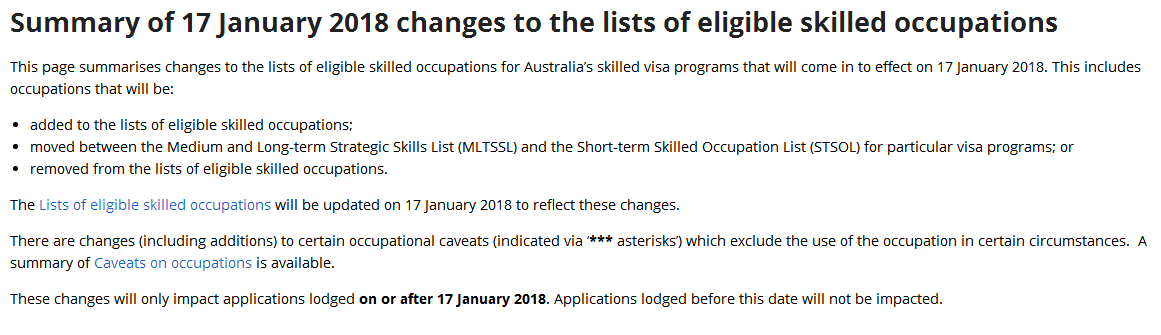 今日,澳大利亞內政事務部(原移民局)更新了中長期職業列表(MLTSSL)和短期職業列表(STSOL),有的職業幸運地被添加到了列表中,有的職業無奈地被刪除,新的職業列表2018年1月17日就開始生效,我們一起來看看職業列表有哪些變化吧!