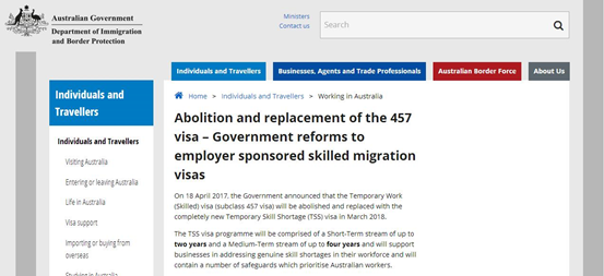 2017年4月18日,也就是今天!澳洲政府宣布:457臨時工作簽證將被廢除,一個臨時技能短缺簽證將取代。