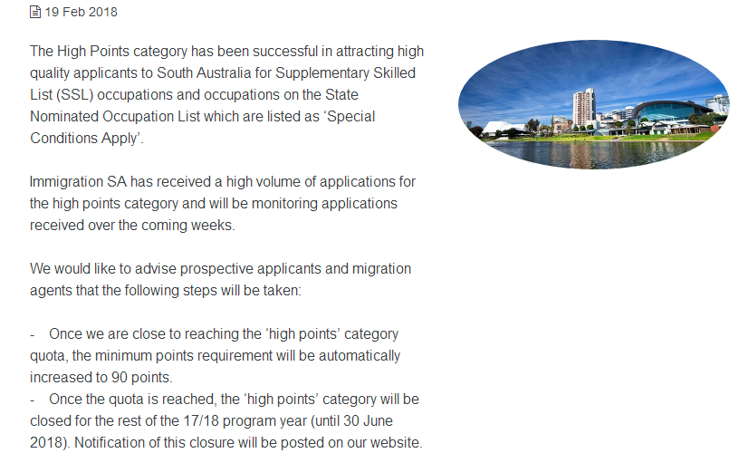 2月19日,南澳政府針對州擔保的高分類別向申請者和移民代理人做出了新的說明。