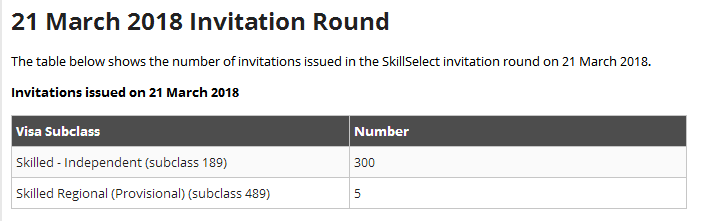4月5日,澳大利亞內政部更新了2018年3月21日的EOI官方報告,然而,該輪189獨立技術移民的邀請人數延續之前的依舊僅有300人, 489偏遠地區親屬擔保僅有5人。
