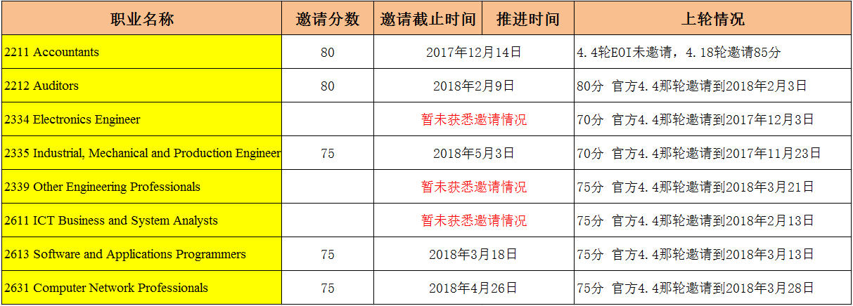 今日凌晨,澳大利亞內(nèi)政部就發(fā)放了2018年五月份第一輪EOI邀請(qǐng)。本輪邀請(qǐng)的數(shù)量大概還是和前幾輪一致保持在300個(gè)。小編根據(jù)內(nèi)部獲邀信息及各移民群中朋友的信息統(tǒng)計(jì)本輪獲邀情況如下: