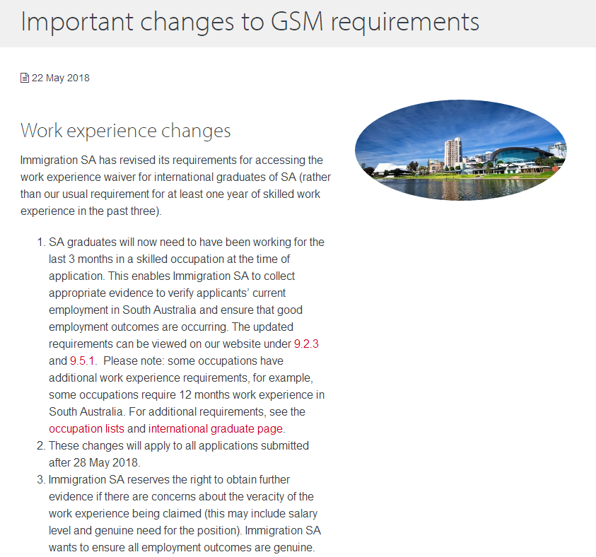 針對(duì)南澳普通畢業(yè)生,職業(yè)在南澳州提名列表上,職業(yè)狀態(tài)為available或者low availability,要求至少要在職3個(gè)月,每2周需工作至少40小時(shí),才能申請(qǐng)工作經(jīng)驗(yàn)豁免。