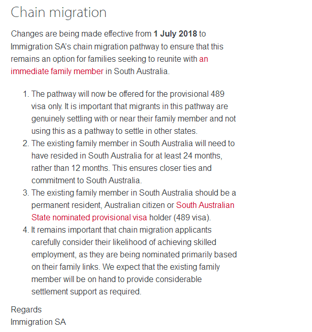 c. 擔(dān)保的親屬必須是澳洲PR或者是澳洲公民,或者持有南澳489簽證;