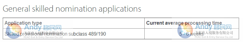 目前已遞交的申請190/489 case審理時間需要5-6周。