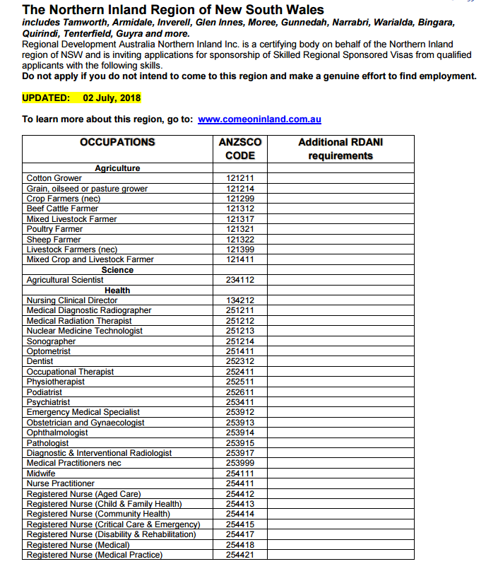 獲邀分數增加到65分,新公布的職業列表中刪除了QuantitySurveyor和SecondaryTeacher這兩個職業。這兩個職位的申請人遞交申請的截止日期為2018年6月30號。下圖為新州NorthernInland地區目前可以申請489州擔保的職業列表。可以看到,像注冊護士,幼教等職業還是在列表上的。