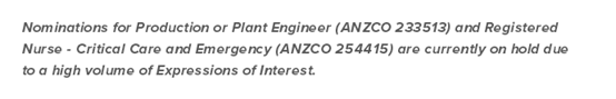 Riverina于7月2日公布了職業列表,今日在其網站發出一則消息,233513生產或工廠工程師和254415注冊護士(重癥監護和急救)因申請量過大暫停接受申請。