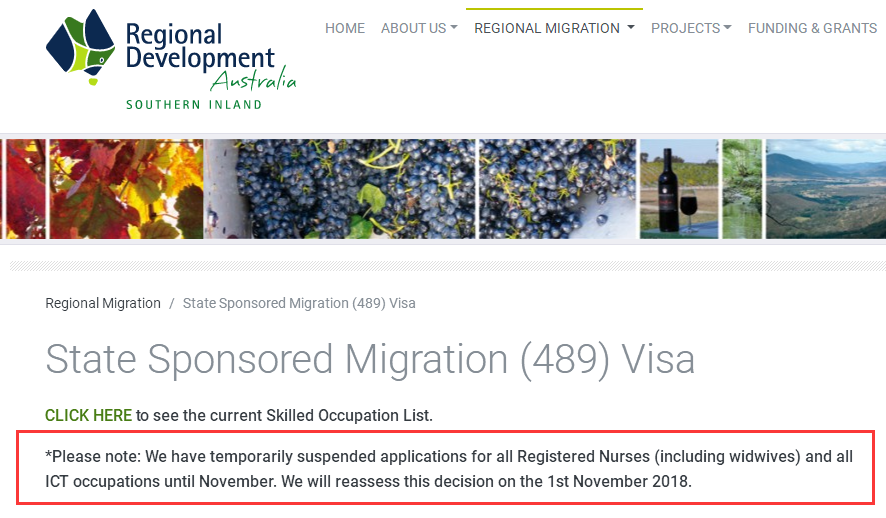 Southern Inland突然做此決定想必是因為護士和ICT職業的申請者巨多, 此前也多次因部分職業申請量過大關閉過申請。
