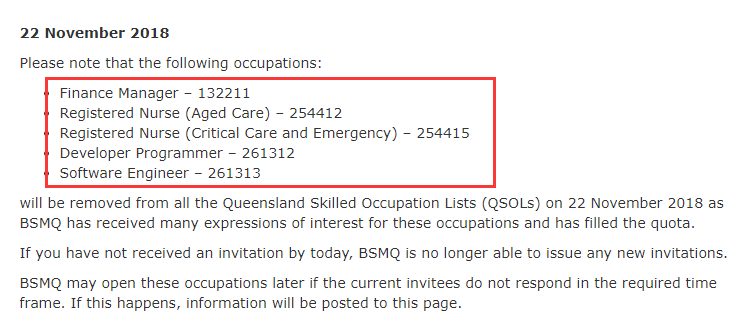 昨日,昆州官網宣布:因收到大量申請,導致配額已滿,有五個職業被移出昆州職業列表,無法再申請昆州州擔保!