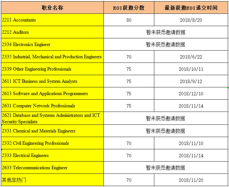今日凌晨,澳大利亞內政部按時發放了12月份的EOI邀請,是2018年最后一次邀請,也是2018-19財年總第六輪邀請。那么這一輪發放了多少個邀請呢?結合我司客戶及各論壇網友的情況,這一次的EOI情況不太理想,發放的邀請大大減少,各專業推進緩慢!