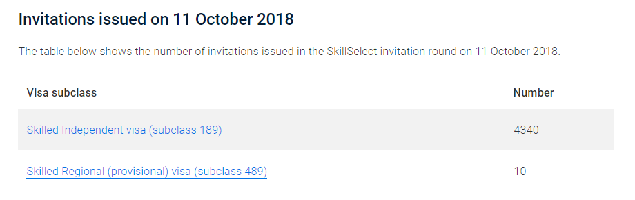 此輪189獨立技術移民邀請了4340人,比9月11那輪多邀請1850人;489偏遠地區親屬擔保邀請了10人。
