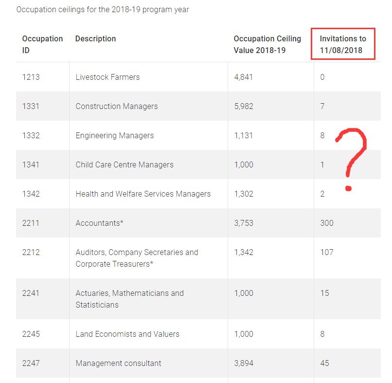 因移民局bug,未顯示截至本輪的邀請數量,網站顯示的是倒退至8月11那輪的邀請數據,因此無法計算本輪各職業具體邀請了多少個。但是本輪邀請總量多,各職業都有較大的進展也是一件喜事。