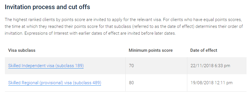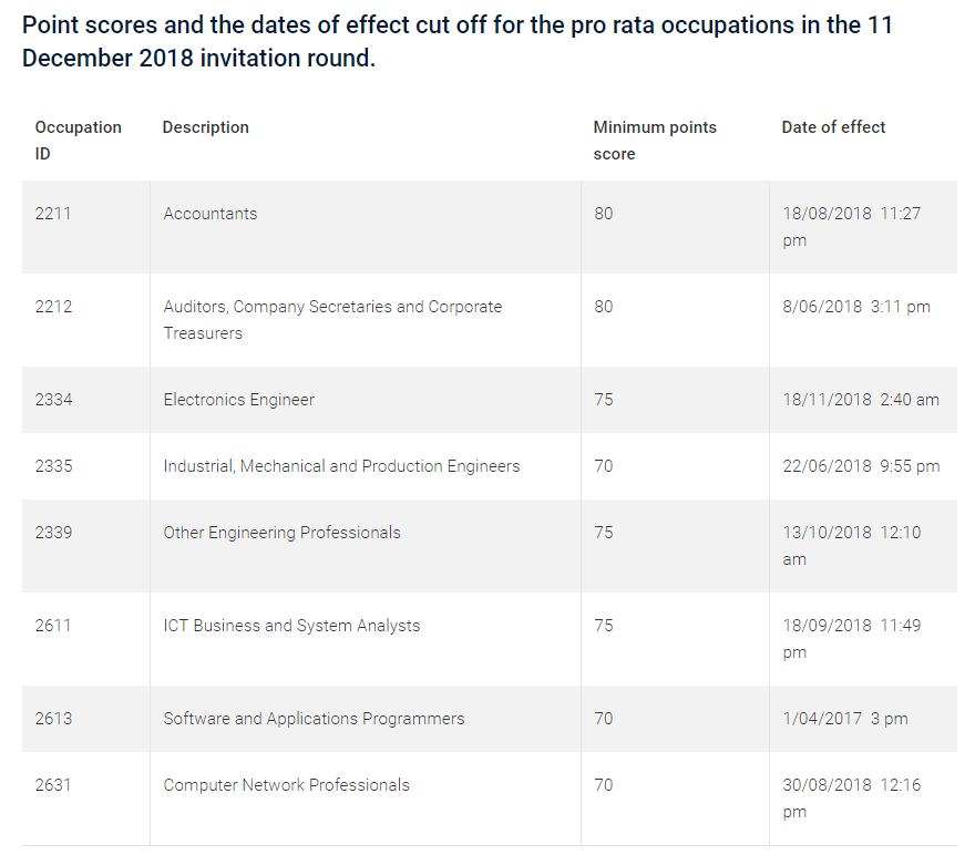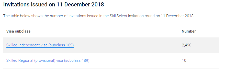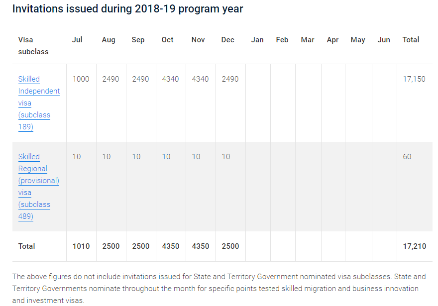 2018-19年度截至2018.12.11輪:189獨立技術移民共邀請了17150人;489偏遠地區親屬擔保共邀請60人。