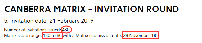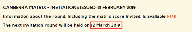 Canberra Matrix第五輪邀請結果出來了,最低邀請分數再降5分!