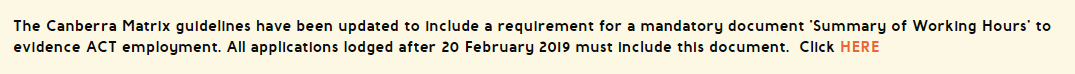 堪培拉政府特別提醒:今日起遞交申請必須要填寫“Summary of Working Hours form”,在這個表格中必須詳細地填寫在職情況,否則沒有填寫這份表格將會被ACT政府直接拒簽!