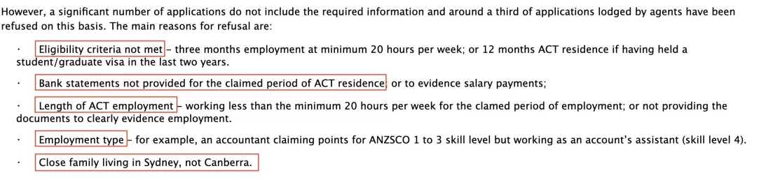 堪培拉對被拒的申請進行了分析,拒簽主要有以下幾點原因: