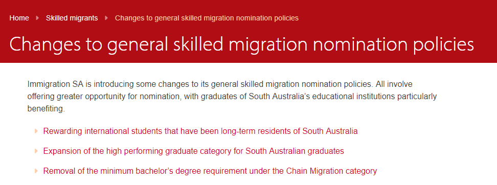 今日,南澳州政府宣布技術移民州擔保政策改革,旨在為更多申請人提供州擔保機會。本次改革受益者主要是南澳的畢業生。