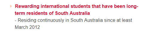 這項政策主要針對:從2012年3月或更早開始連續居住在南澳的國際學生。