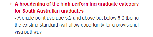 這項政策主要針對:GPA高于5.2但低于6.0分的南澳畢業生。這部分學生將有機會申請臨時簽證,也就是489簽證。