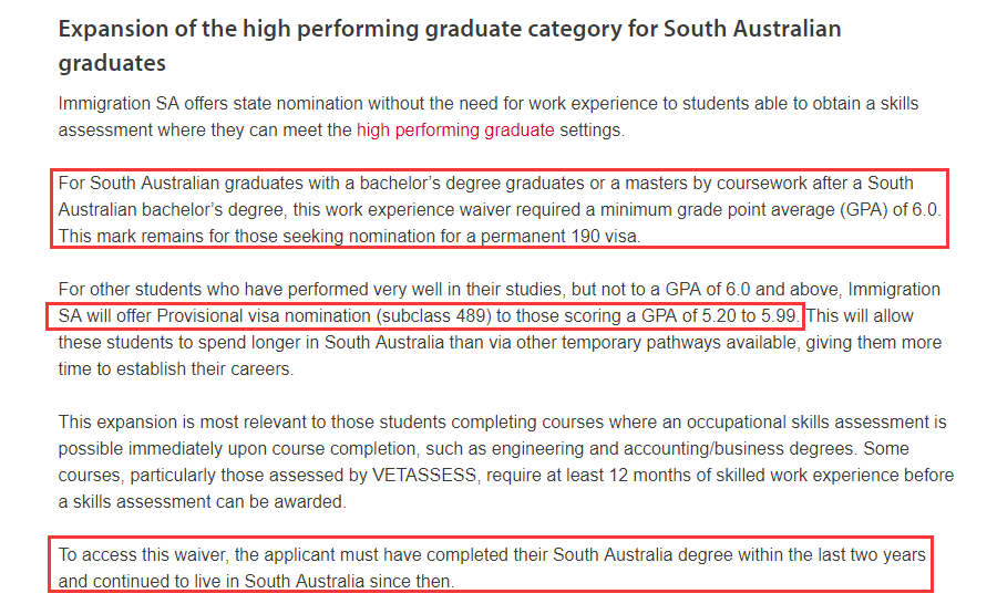 根據新的政策,南澳優秀本科畢業生和碩士畢業生(碩士之前的本科也必須在南澳完成)可豁免工作經驗。
