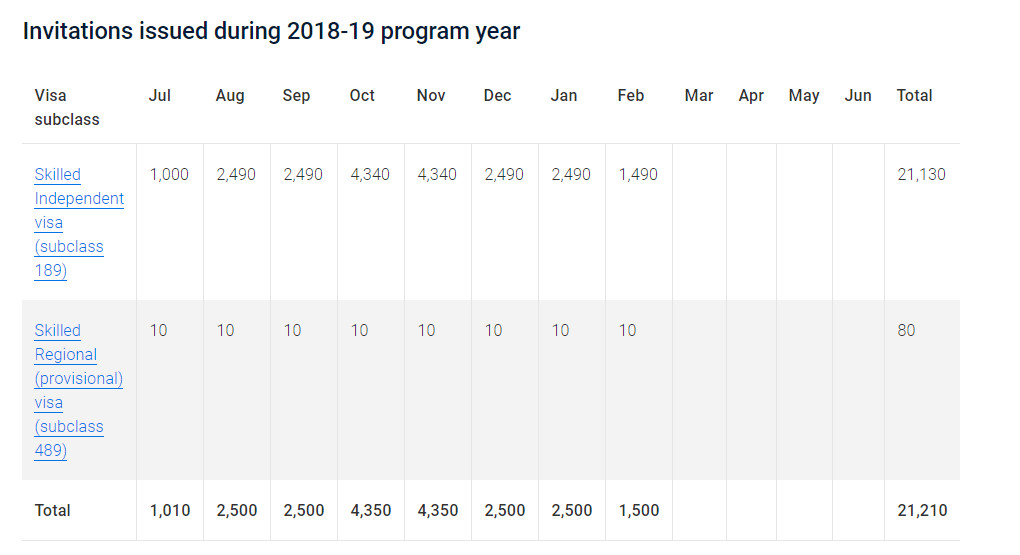 2018-19年度截至本輪:189獨立技術(shù)移民共邀請了21130人;489偏遠地區(qū)親屬擔(dān)保共邀請80人。