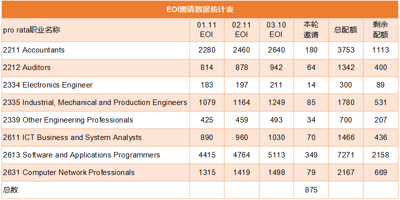 今日,澳大利亞內政部更新了2018-19財年第九輪即2019年3月10日的EOI邀請官方報告。以下是大家最關心的各個職業的邀請情況: