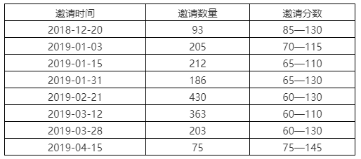 本輪邀請無論是最低分還是最高分都提高了15分,并且最高邀請分?jǐn)?shù)為截至目前8輪邀請的最高分—145分;邀請人數(shù)卻是史上最少,僅75人獲邀。