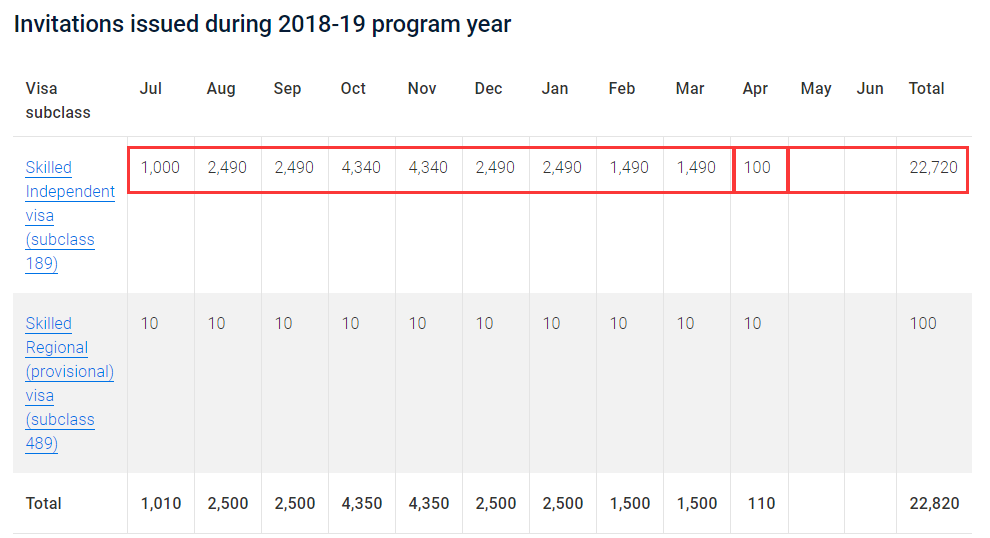 2018-19年度截至本輪:189獨(dú)立技術(shù)移民共邀請(qǐng)了22720人;489偏遠(yuǎn)地區(qū)親屬擔(dān)保共邀請(qǐng)100人。