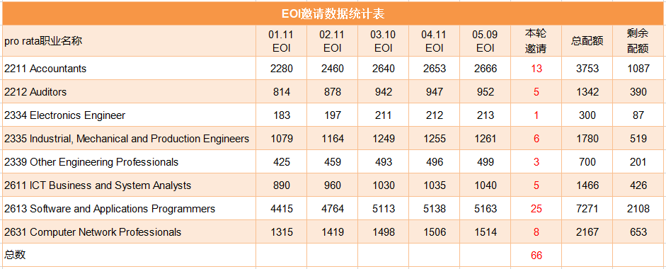 今日,澳大利亞內(nèi)政部更新了2018-19財年第十一輪即2019年5月9日的EOI邀請官方報告。本財年倒數(shù)第二輪邀請,依舊配額荒,邀請甚少。以下是大家最關(guān)心的各個職業(yè)的邀請情況: