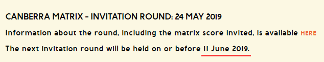Canberra Matrix第十輪邀請結(jié)果出來了,