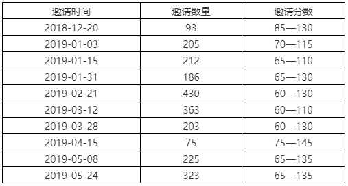 邀請分數(shù):所有70分—135分,65分邀請至4月30號