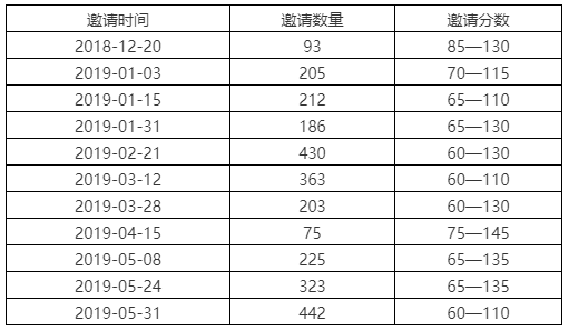 邀請分數:所有65分—110分,60分邀請至1月31日