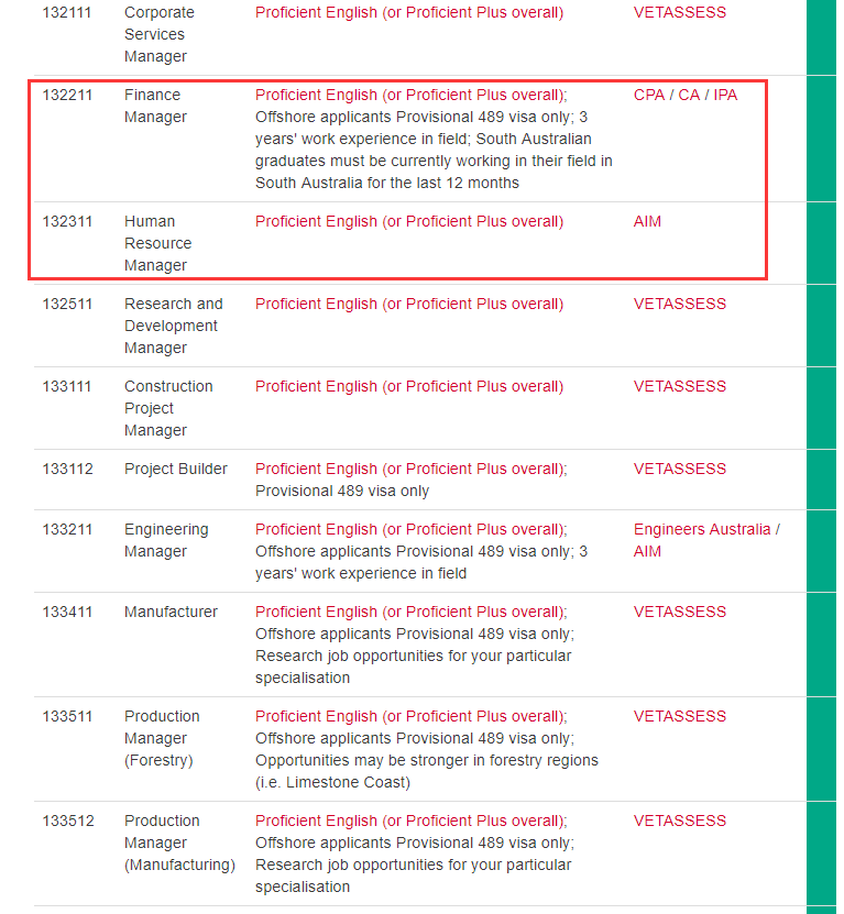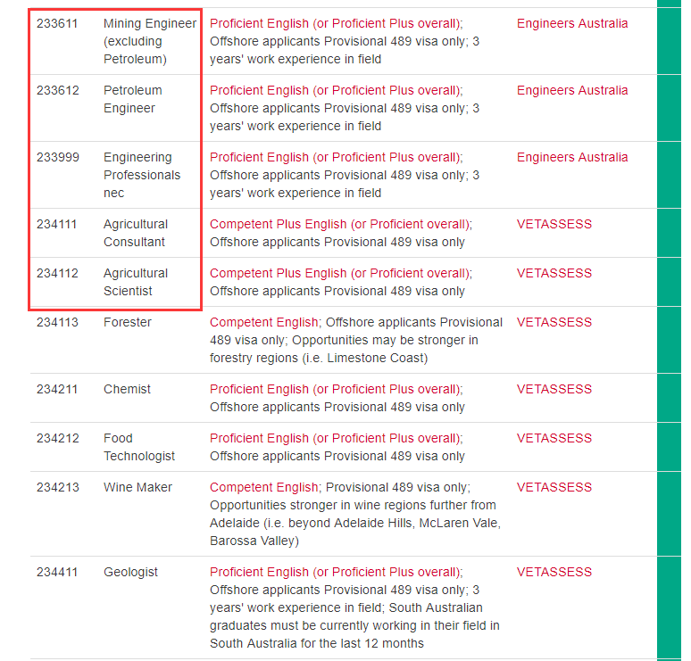 查看完整南澳職業清單:鏈接如下https://migration.sa.gov.au/skilled-migrants/lists-of-state-nominated-occupations