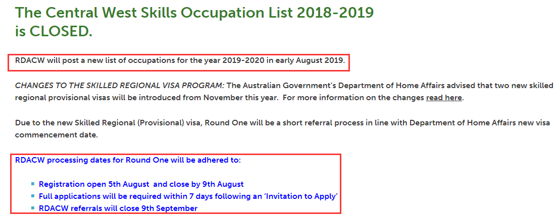 Central West近期也在官網發布聲明表示:正在制定新的職業清單,并將于8月初發布。但由于在11月16日要引入新偏遠地區簽證,所以Central West新財年的第一輪邀請將于8月5日-9日,僅僅開放4天!